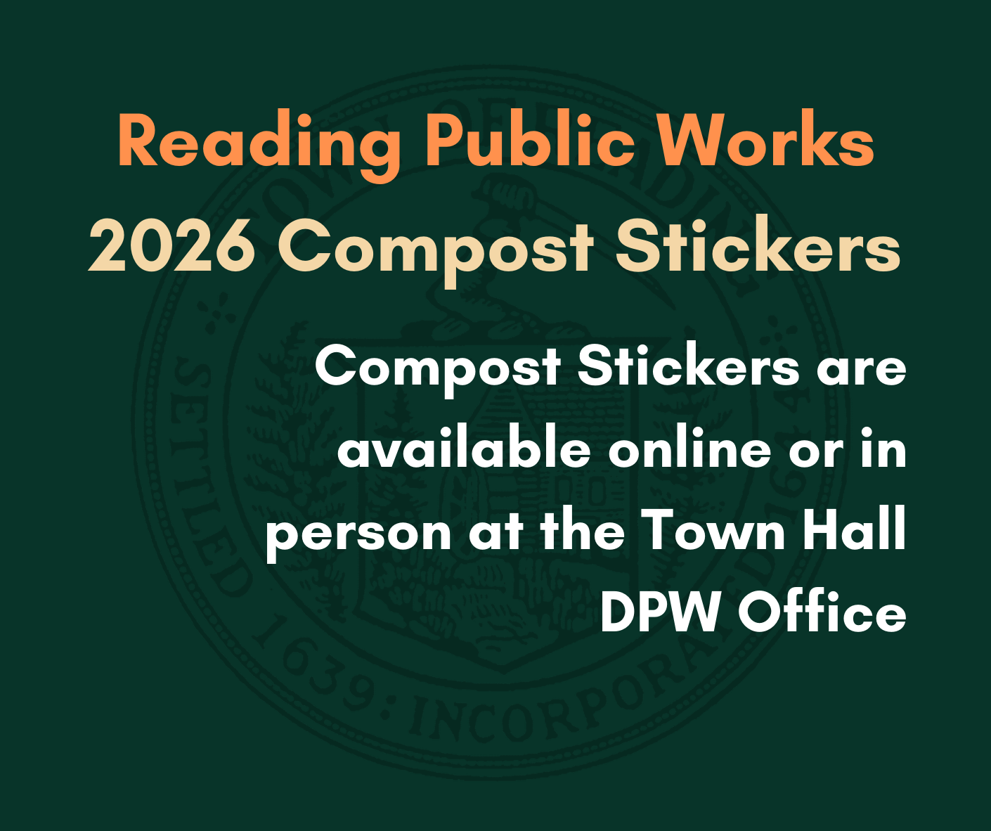 As of January 1, 2026, Reading residents must have a 2026 Compost Sticker to access the Compost Center on Strout Ave.