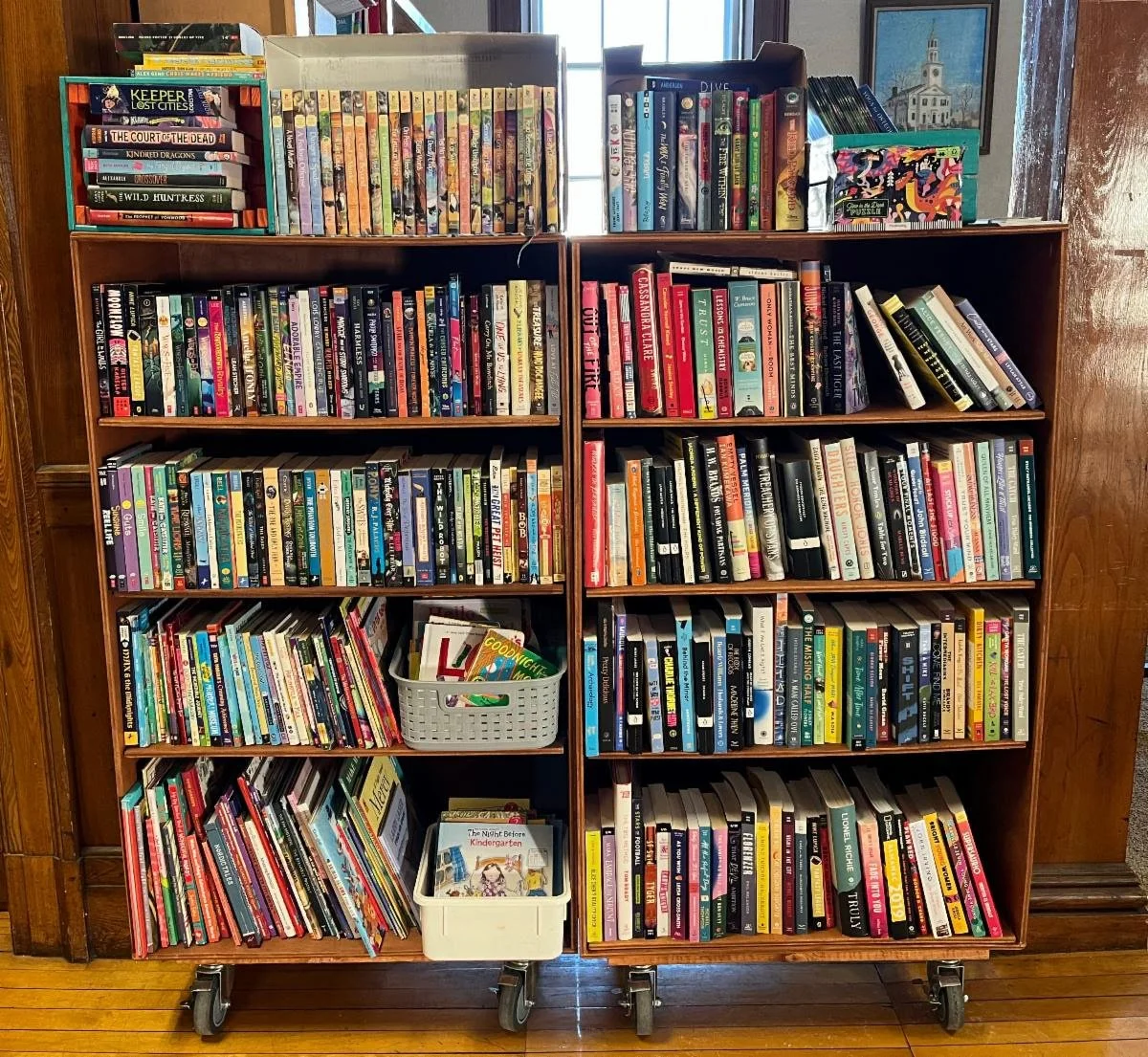 Children and adults visiting the pantry can choose free books from the pantry’s rolling bookshelves. Photo from the Reading Food Pantry February 24, 2026, newsletter.