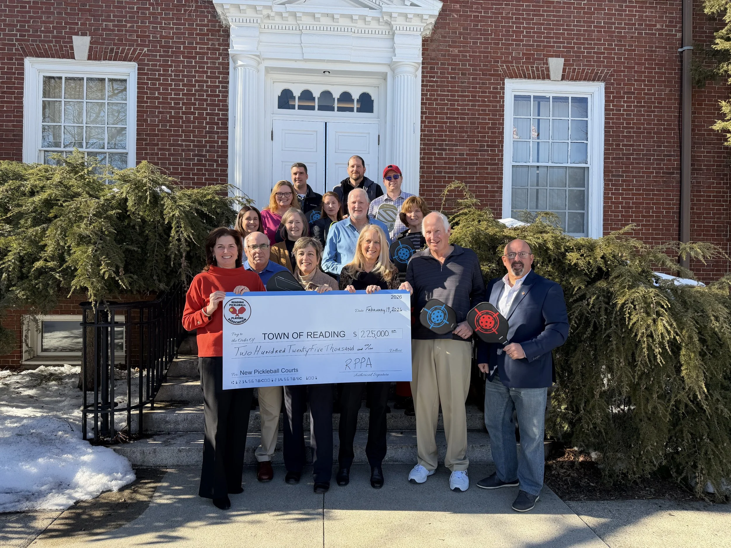READING – Reading Pickleball Players Association (RPPA) President Judy Coltman announced today the organization has completed the transfer of $225,000 to the Town of Reading to offset the cost of new pickleball courts.