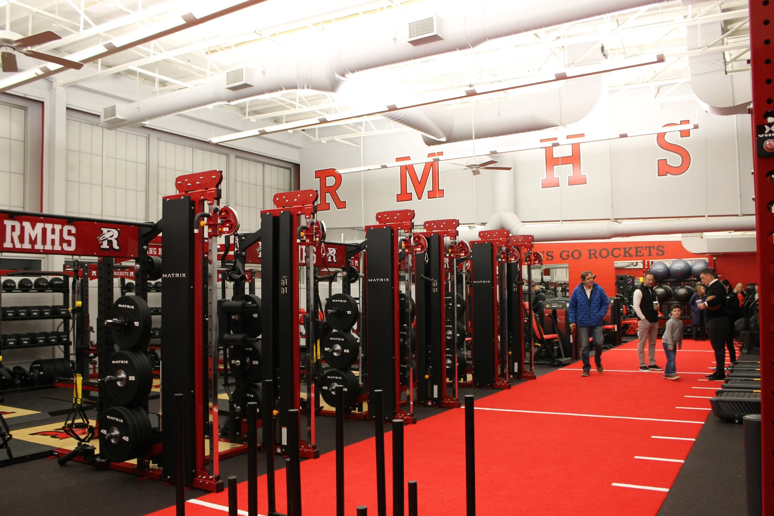 Ribbon-cutting celebrates new RMHS Fieldhouse training and weight rooms funded by Claudia Miksen