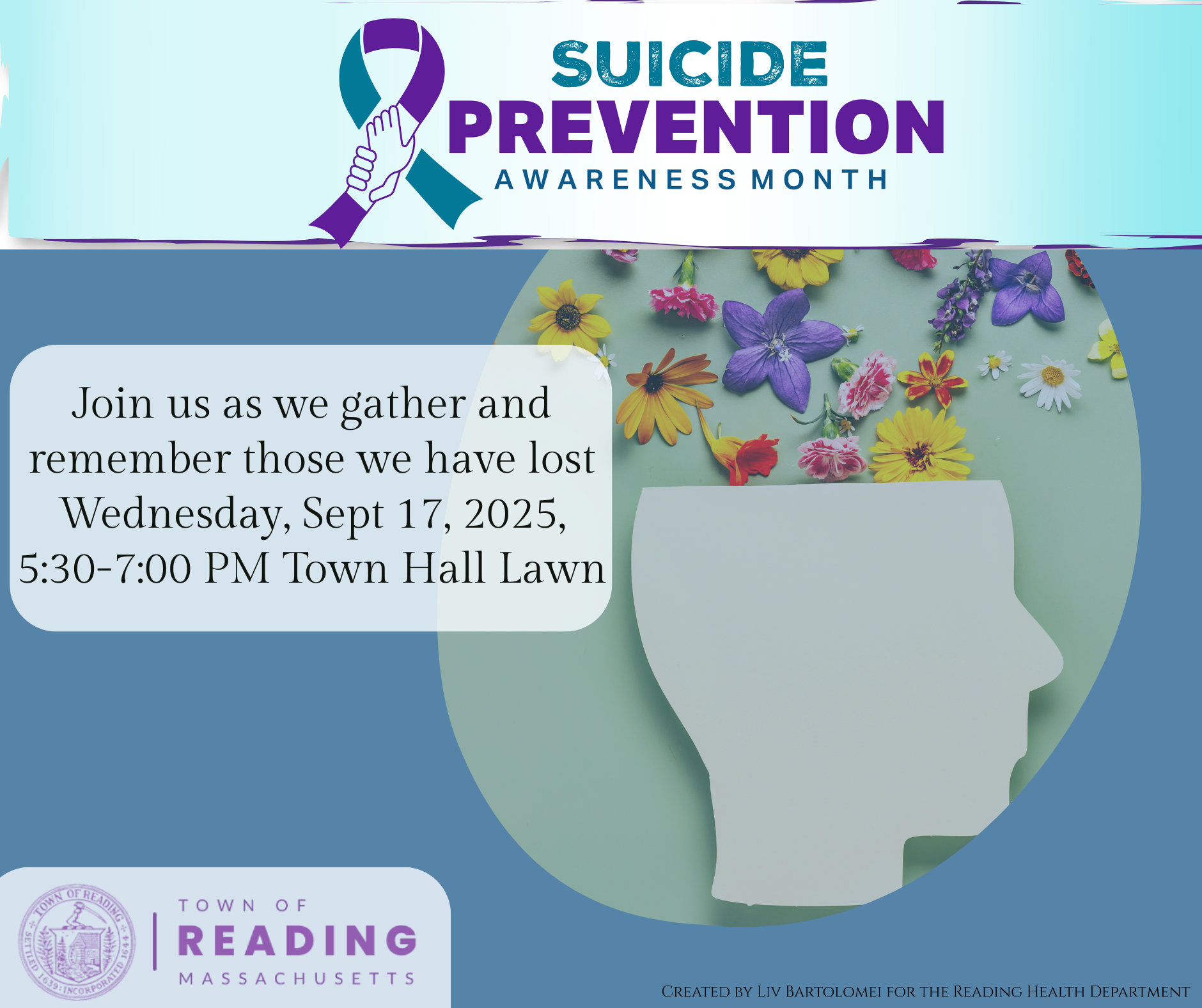 This is a time to come together, raise awareness, and support mental health in our community. Join the Town of Reading's Health Department and Coalition for Prevention & Support to show compassion and remind one another: You are not alone. Help is available, reach out, listen, and share support.