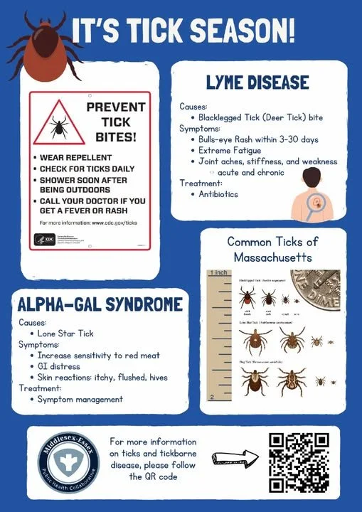 Additional information about tick prevention and tick-borne illnesses is available through the Massachusetts Department of Public Health.