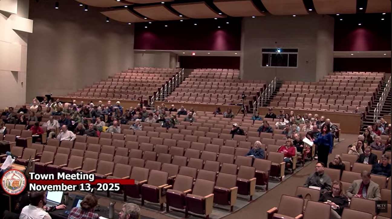November 13, 2025 - Town Meeting Night 2 in the Performing Arts Center at Reading Memorial High School. Photo from the RCTV Youtube page.